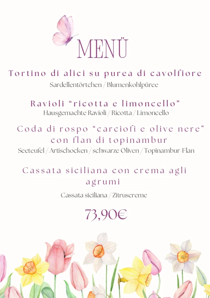 Ein romantisches 4-Gänge Menü wartet auf Sie!